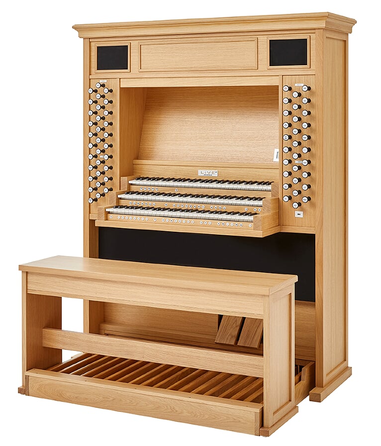 På Live III byter andragen namn när man byter orgeltyp! På denna modell finns även oktavkoppel. Tekniskt avancerad, musikaliskt raffinerad. En fröjd att spela på!